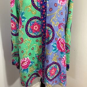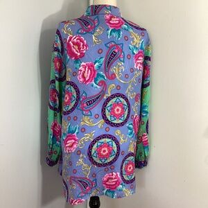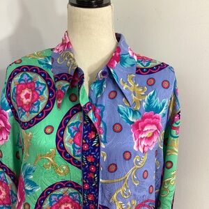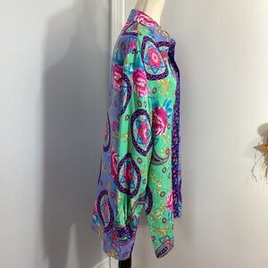 VTG 80'S BOB MACKIE WEARABLE ART XL 100% JACQUARD SILK BLOUSE COLOR-BLOCK FLORAL PAISLEY