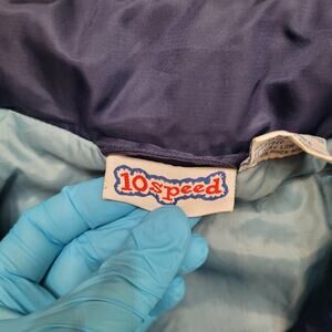 VTG 80s 10speed Piped Bomber Jacket Womens Large Retro Indie Sleaze Puffer Jacket Style Indie Sleaze Skater Bowling Jacket Ski Jacket Style Piped Collar Colorblock Navy Blue Lightweight Full Zip 100% Nylon