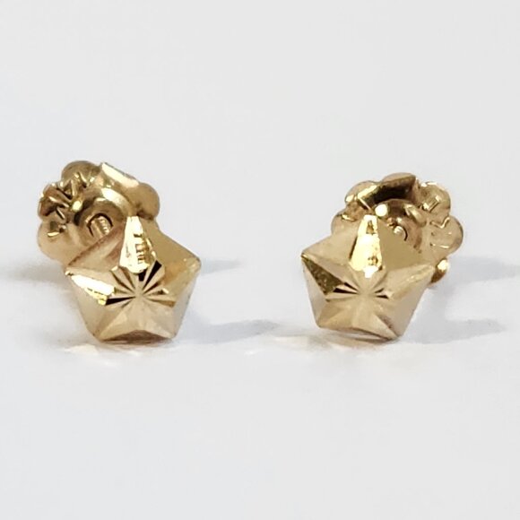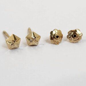 VTG 80s 14K Solid Yellow Gold Diamond Cut 3mm Hexagon Screw Back Stud Earrings