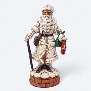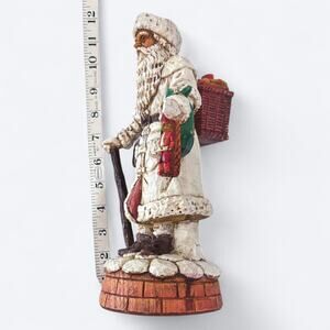 Vintage 80s 1989 St. Nicholas Santa Claus Figurine Music Box Plays Jolly Old St. Nicholas Song from Enesco in White, Multi. 12" Tall.