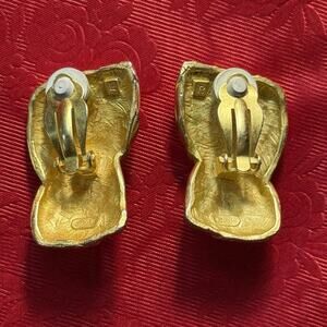 VTG 80s 90s Anne Klein AK Clip On Earrings Matte Gold Tone Statement Runway