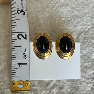 Vintage gold tone and black oval post earrings.