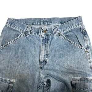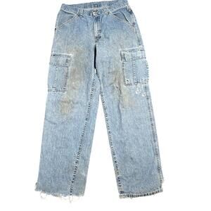 VTG 80s 90s Lee Dungarees Cargo Jeans Sz 33x34 Thrashed Baggy Skater Barrel USA
