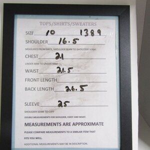 PLEASE SEE PICTURES FOR MEASUREMENTS. Measurements are of the garment laid flat. Measurements of shoulder, chest/bust, waist and hip are to be doubled.