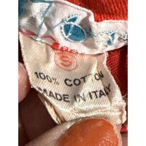 This vintage tank top by Paul Harris Designs features a striped pattern in red and white. Made in Italy from cotton, it has a sleeveless design with a scoop neck and wide straps. The classic fit and retro theme make it a perfect choice for casual or travel wear during the summer and spring seasons.