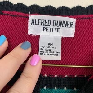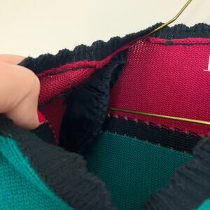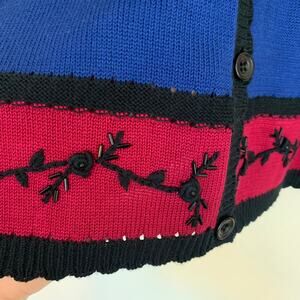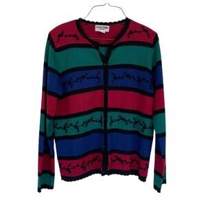 VTG 80s 90s bold stripe floral bead embroidery button cardigan sweater MEDIUM