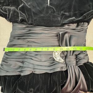 VTG 80s A.J. Bari Dress Silk, Rayon, Velvet, Cinch Waist, Rhinestone Bow, SZ 6