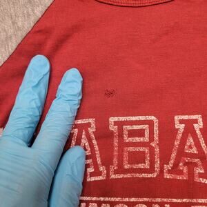 VTG 80s Alabama Crimson Tide T-Shirt Mens XS Womens S Raglan 50/50 Single-Stitch Paper Thin Soft 50/50 Cotton Poly Blend Made In USA Distressed Graphic Cracked Print Striped Sleeves Crimson Red Heather Gray Artex Tag