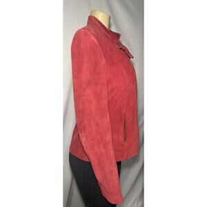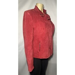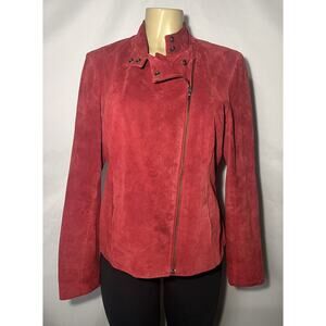 VTG 80s Alfani Red Suede Leather Motorcycle Moto Biker Jacket Womens Lar…