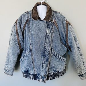 VTG 80s Andy Johns Lined Denim Jean Bomber Jacket Men M Leather Fader Streetwear