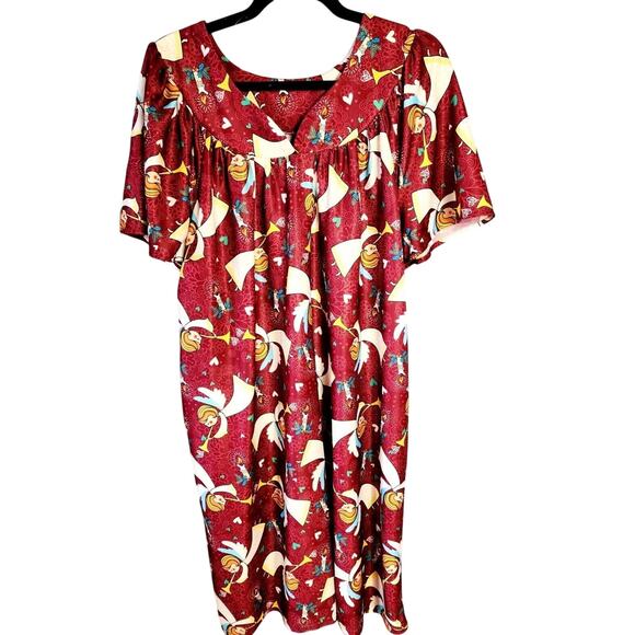 VTG 80s Anthony Richards House Dress MuuMuu Plus Sz 1X Pockets Christmas Angels
