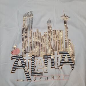 VINTAGE 80S ATLANTA SKYLINE SWEATSHIRT WOMENS L, GOLD FOIL ATLANTA CREWNECK MADE IN USA, BOXY TAPERED HEM BLousy FIT 50 50 FLEECE, MICHOU ATLANTA GEORGIA GRAPHIC SWEATSHIRT, RETRO ATL CITYSCAPE PULLOVER WHITE, ATLANTA SWEATSHIRT, GOLD FOIL, MADE IN USA, 80S VINTAGE, CREWNECK