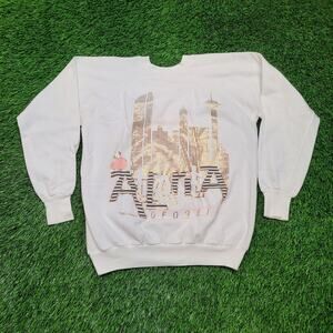 VTG 80s Atlanta Skyline Sweatshirt Boxy Tapered Fit Womens L Metallic Crewneck