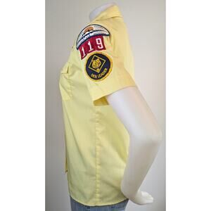 VTG 80s BSA Boy Scouts Womens Den Leader Short Sleeve Shirt Sz 8 Yellow Patches