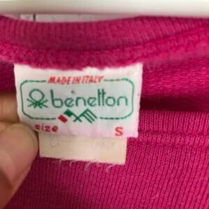 VTG 80s Benetton Women's S Pink Oversized Crop Pullover Long Sleeve 100% Cotton