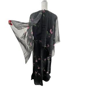 VTG 80s Black Chiffon Floral Maxi Dress Sz M Witchy Whimsigoth Cape Fairy Grunge