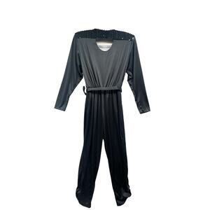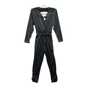 VTG 80s Black Jumpsuit Women 9/10 Sequin Disco Witchy Goth Party NYE Glam Goddes