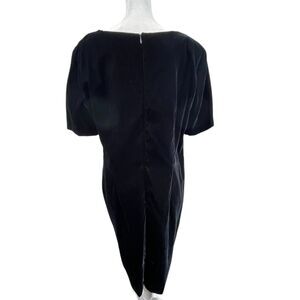VTG 80s Black Velour Sheath Dress Size L Witchy Whimsigoth Office Siren Velvet