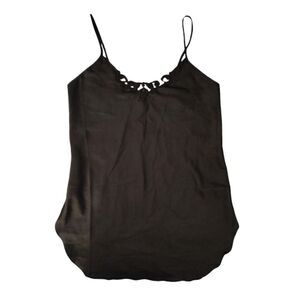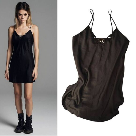VTG 80s Black Satin Floral Crochet Mini Intimates Slip Dress Size Large