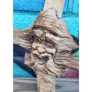 Vintage 1988 Carved Wood, Yard Art, Folk Art | Old Man | Signed (Sylvia 2‐88 №33) 14.5" H x 11.5" W | Wood Carving | Goog Vintage Condition, please refer to photos for condition.