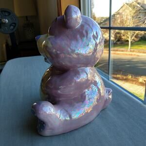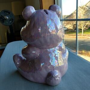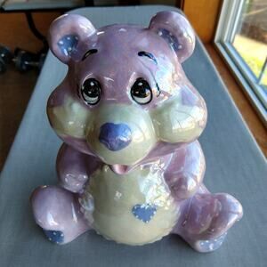 VTG 80s Ceramic Teddy Bear Bank iridescent lavender 9" H purple patch cottage
