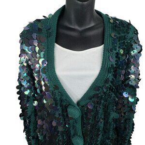 VTG 80s Christmas Party Sequins Festive Green Knit Cardigan Women’s M WICKED
