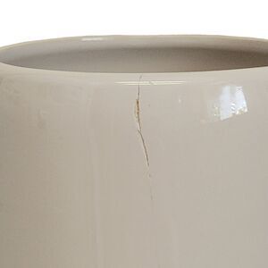 There is a 3/4" gouge on the side of the mug near the top rim. It does not go all the way through to the inside of the mug. See photos. Otherwise gently used condition with no other flaws that I can see.