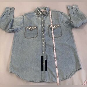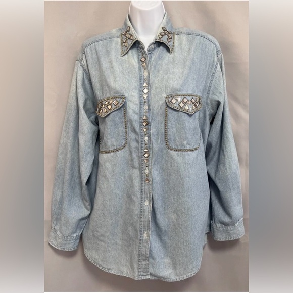 VTG 80s Clodia Dee Studded Denim Top Sz Large Long Sleeve Shoulder Pads Women