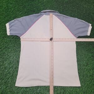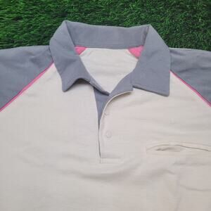 Vintage 80s color block polo shirt mens M USA made gray blue cream with pink piping new wave skate preppy retro shop now
