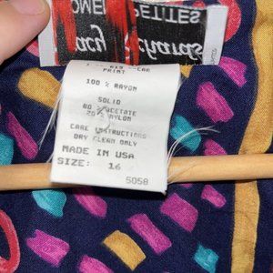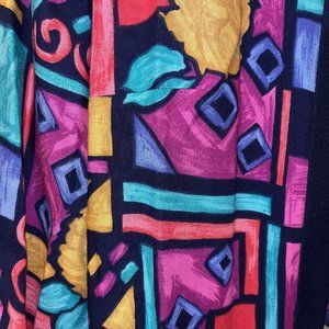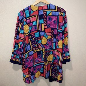 VTG 80’s Colorful Geo Pattern Open Cardigan 3/4 Sleeve Size 16 Petite Made USA.