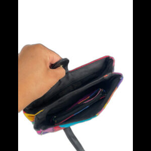 VTG 80s Colorful Leather Patchwork Bright Purse Handbag Wallet La Covina