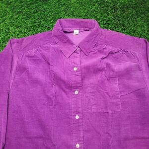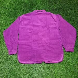 Vintage 80s purple corduroy button-down shirt women’s L/XL USA made fine wale texture relaxed boxy fit bishop sleeve poet sleeve boho preppy grunge top