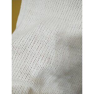 Ramie and acrylic, measurements are 19" pit to pit and 22" length, loose knit (hand loomed), round neck, pastel argyle pattern, good condition and quality