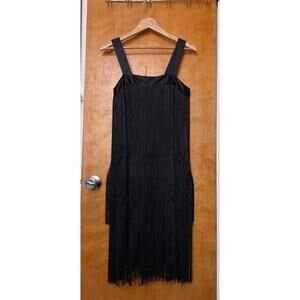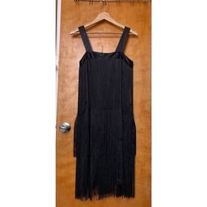 Vintage 80s does 20s Black Fringe Flapper Dress 9/M
