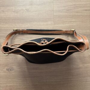 VTG 80s Dooney & Bourke All Weather Leather Drawstring Bucket Bag Black Tan USA