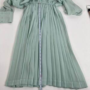 IN THE MOOD Vintage 80s Dress Accordion Crochet Lace Mint Green Long Sleeve Sz 8