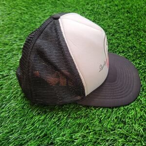 80S PROMO WEAR, RETRO ADVERTISING CAP, FARMER JOHN MEAT BRAND, LOS ANGELES ICONIC PRODUCT, DODGER DOG PROMOTIONAL GEAR, FOAM FRONT TRUCKER, BLACK AND WHITE COLORWAY, OLD SCHOOL COMPANY MERCH, MADE IN USA HAT, COLLECTIBLE BRAND APPAREL