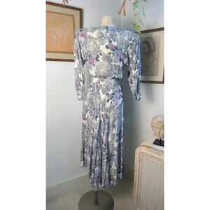 VTG 80s Floral Button Up Midi Dress Purple Rose Pattern Cottagecore style