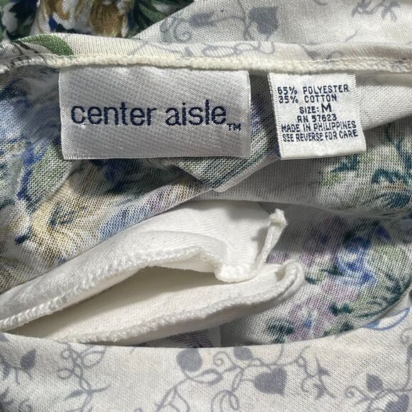 VTG 80s Floral Midi Dress Size M Blue Coquette Shoulder Pads Lace Trim Spring