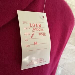 Deadstock Jack Mulqueen midi dress in saturated fuchsia lambswool‑angora blend. Made in the USA, never worn, originally retailed around $200. Fold‑over shawl collar, long sleeves, and a midi silhouette that’s pure holiday luxe.