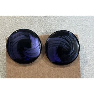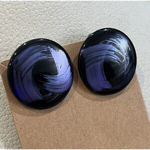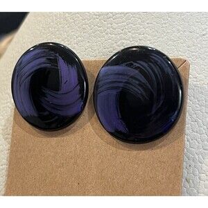 VTG 80s Geometric Abstract Black Purple Hand Painted Clip On Earrings Whimsigoth