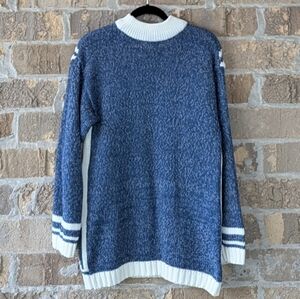 VTG 80s Gina Peters Mock Neck Snowflake Tunic Sweater White Blue Size Small