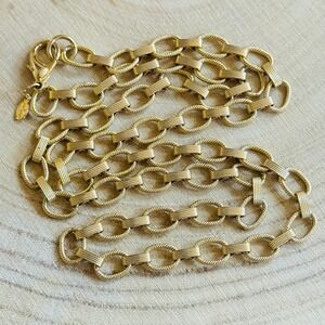 VTG 80s Givenchy bar curved Link chain necklace gold Statement high end 22"L
