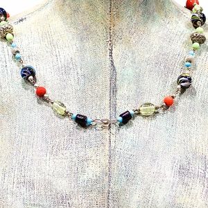 VTG 80's Glass Brass Resin Linked Necklace