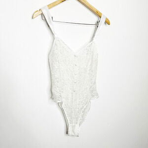 VTG 80s Gold Label VICTORIA'S SECRET WHITE LACE Teddy Semi Sheer high cut SMALL