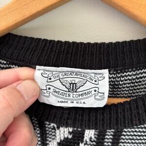 VTG 80's Great American Sweater Company Black White Geometric Sweater Unisex