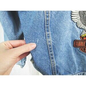 VTG 80s Harley-Davidson Motorcycles Women M 12-14 Eagle Embroidered Denim Jacket