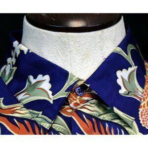 VTG 80s Hilo Hattie Men's Blue Shirt Size L Hawaiian Flowers Pocket 100% Silk