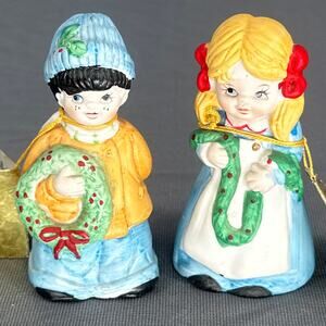 VTG 80s House of Lloyd Porcelain Bisque Bell Ornament Figures Boy Girl Christmas