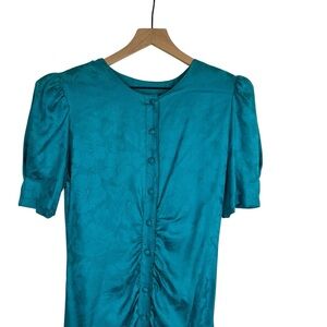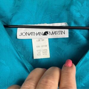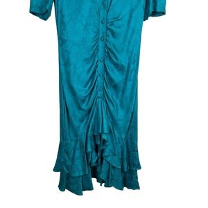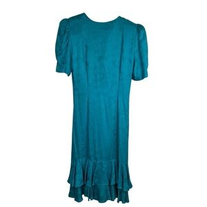 VTG 80's JONATHAN MARTIN Teal Blue Ruffle Hem Midi Dress Size 9/10 Costume Retro